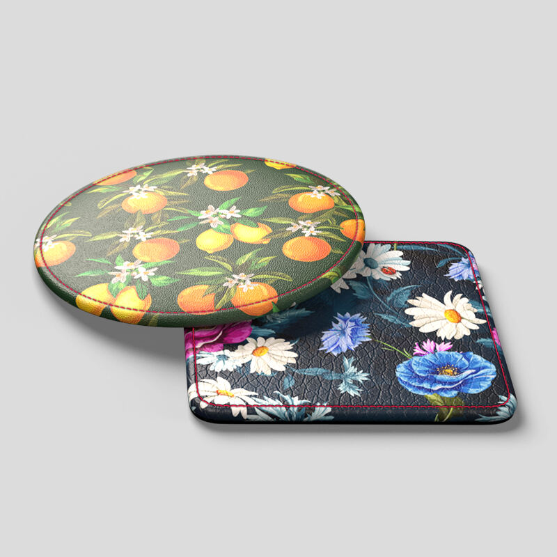 Depending on your design, you may find either round or square custom leather coasters work better. For example, if your design is quite large, you might want to use a square coaster so that the corners of your artwork aren't cut off.