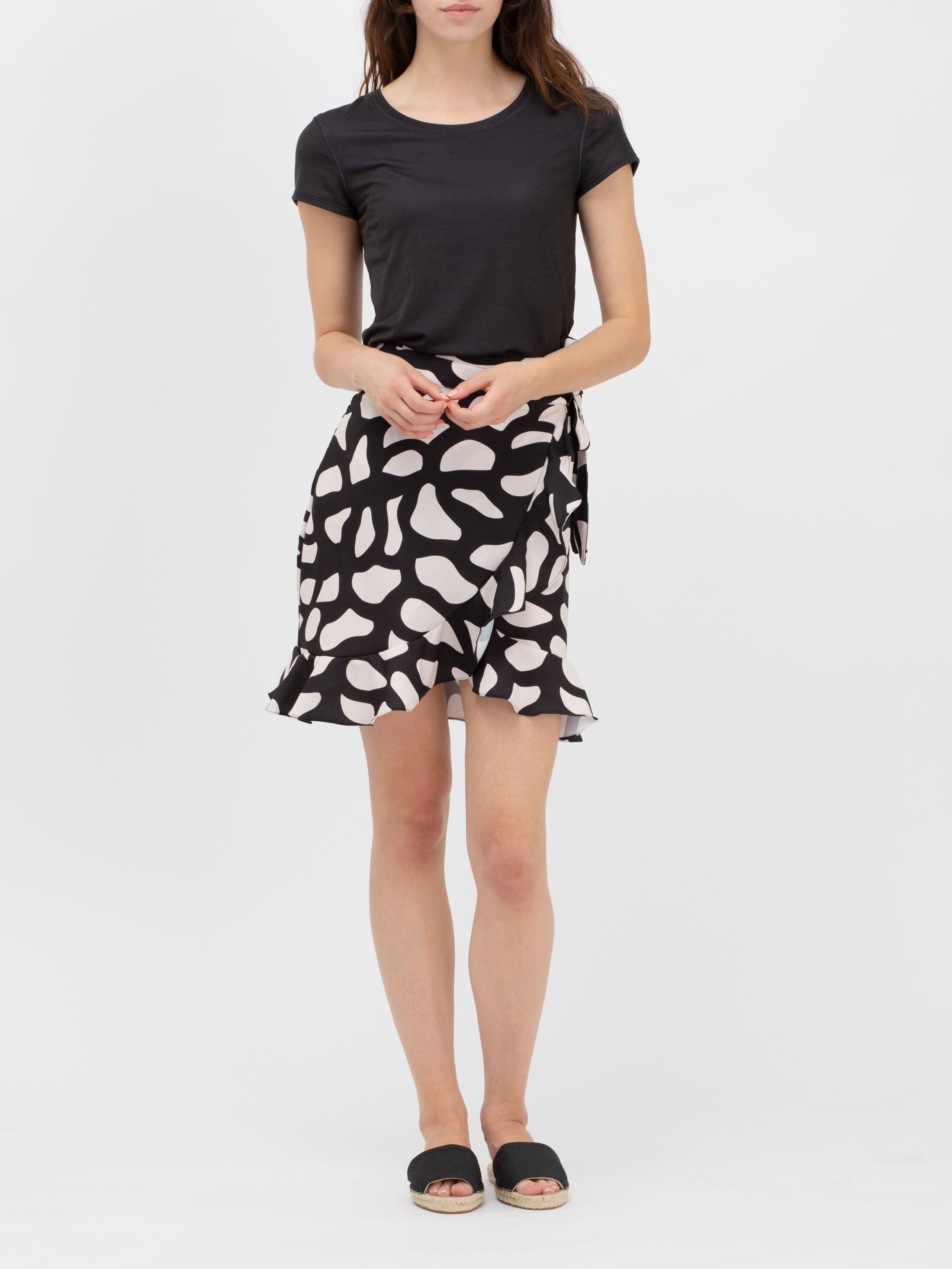 The skirt has a belt tie which features the same print as your skirt. This threads through a button hold on your custom skirt with flounce so that you can tie it at the waist.