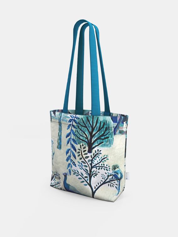 The bag is made from our very strong Tokri cotton panama, a durable woven fabric designed to withstand everyday use and last for years. We use a reactive printing process, which produces exceptionally strong, bright, and long-lasting colours. This method allows the ink to bond deeply with the fabric, resulting in vibrant designs that stay bold even with regular use.