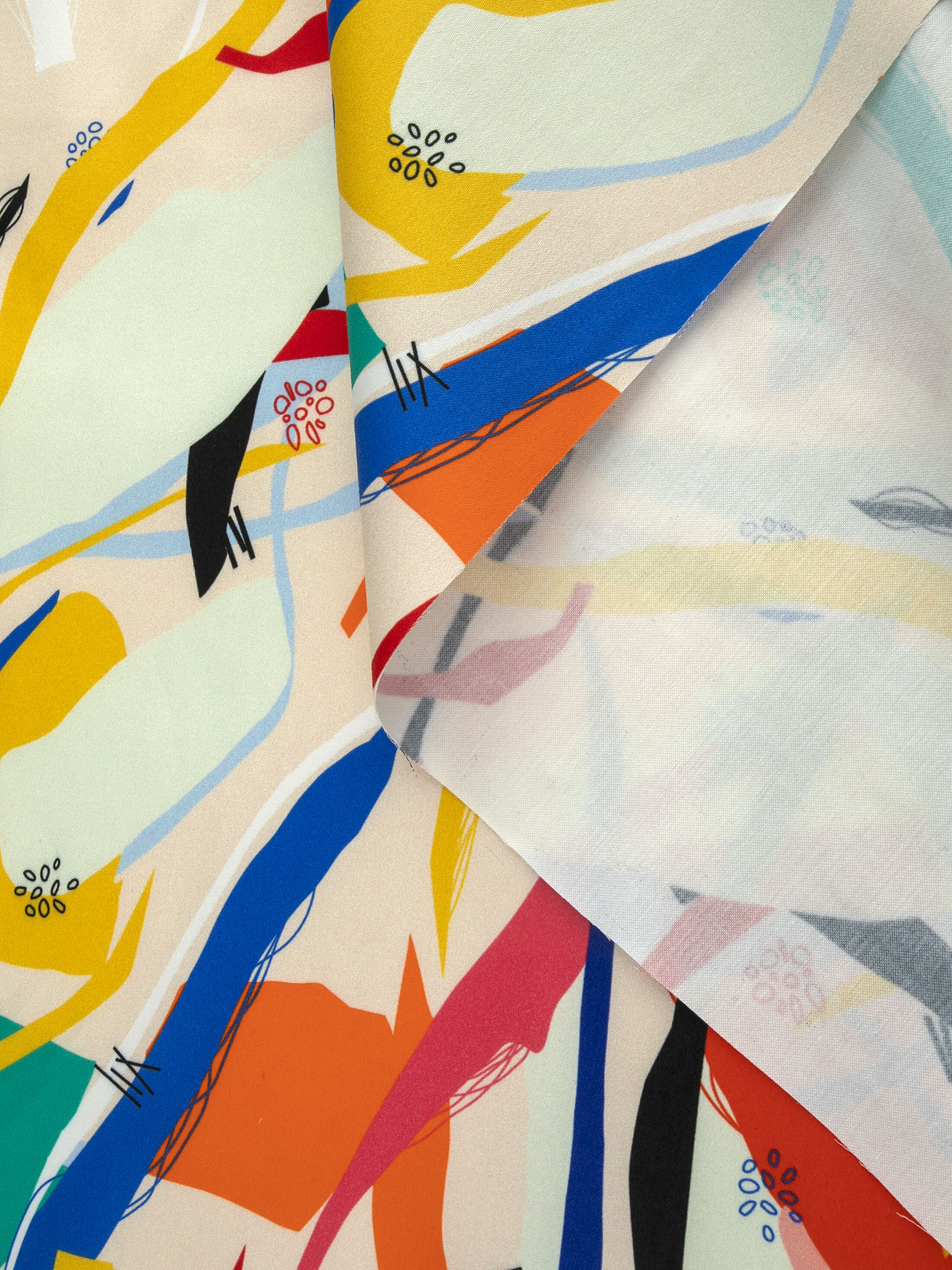Cotton satin fabric is printed using reactive inks, resulting in bold colours and strong wash-fastness.